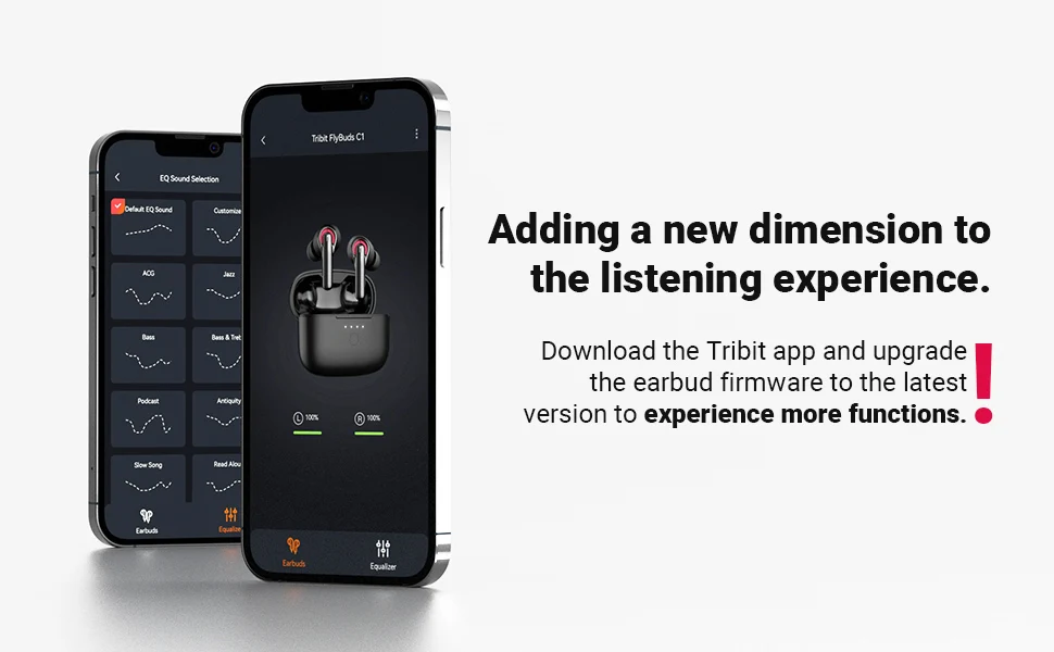 La función EQ en la aplicación de estos auriculares Bluetooth permite personalizar sus propias preferencias de escucha eligiendo los 24 estilos de música. Además, la opción «ACTUALIZAR» en la aplicación le ayudará a mantener la última versión de su FlyBuds C1.