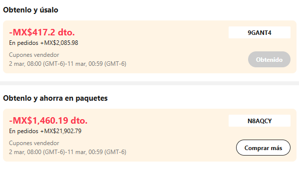 cupon de la tienda : N8AQCY (MXN$1,460.19)