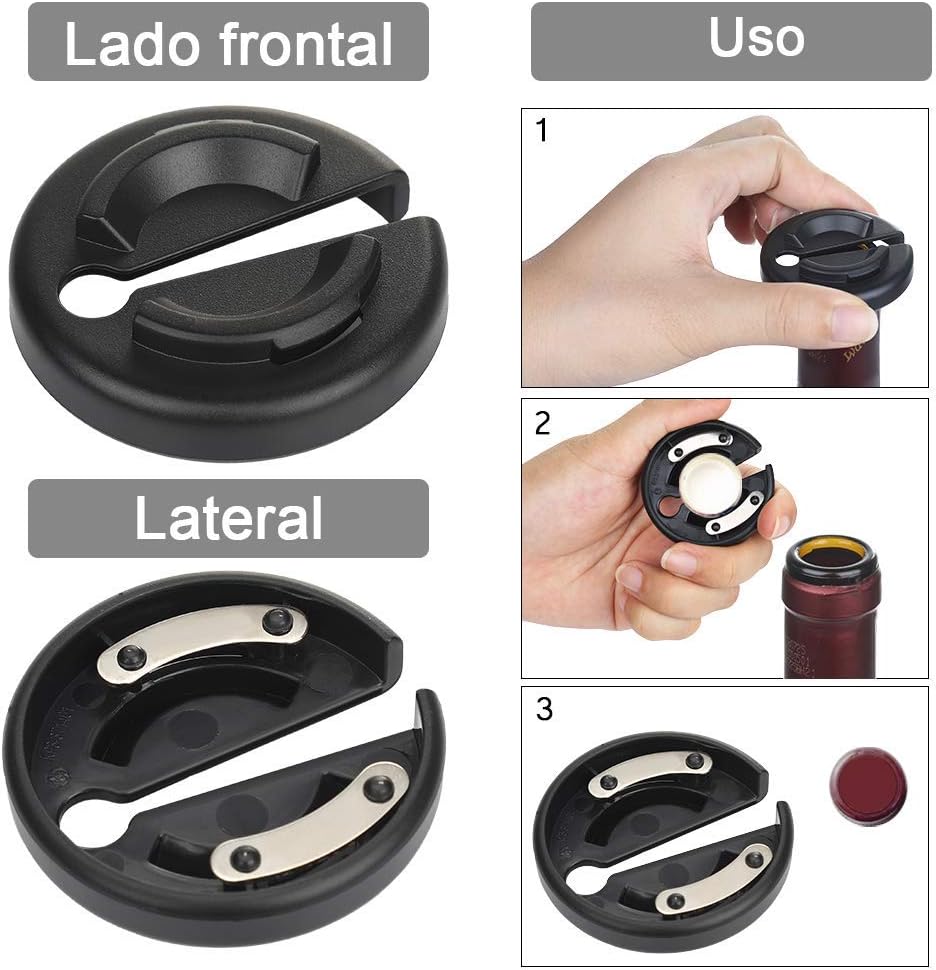 • Abridor eléctrico de botellas – acero inoxidable 304, resistente y duradero, en caso de carga completa, puede abrir directamente la botella de vino tinto alrededor de 30-35 botellas.