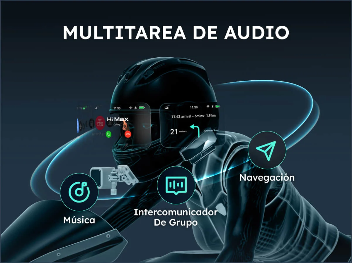 Mantenga los ojos en la carretera y las manos en el manillar. Nuestro motor de funcionamiento por voz natural siempre activo hace que pulsar botones sea cosa del pasado. Sólo tienes que decir «Hola Max» y decirle lo que quieres, tu ASMAX hará el resto.