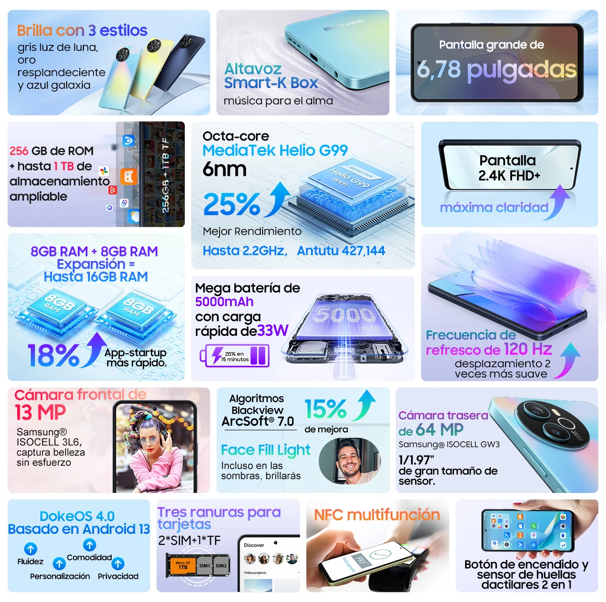 Blackview-Smartphone SHARK 8, teléfono móvil con Android 13, G99, pantalla de 6,78 pulgadas, 120Hz, 2,4 K, 16GB, 256GB, 64MP, estreno mundial