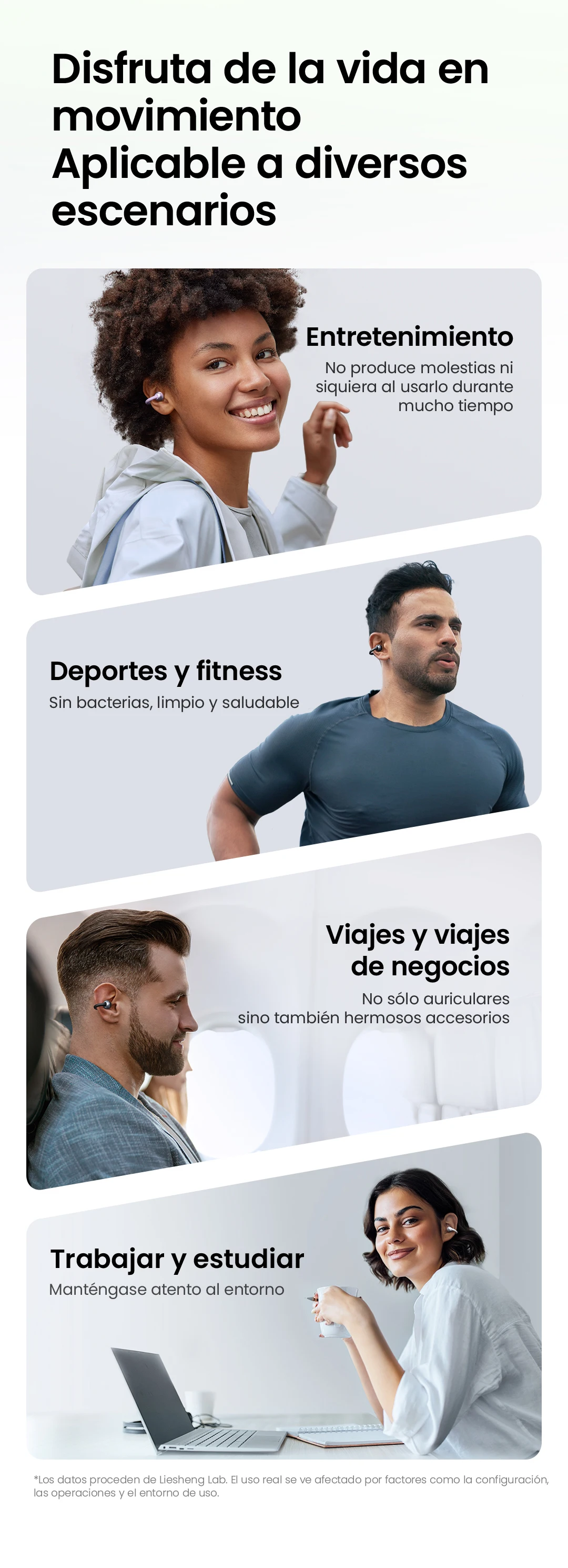 El Material ultraligero le proporciona una experiencia ligera. Y el diseño de oreja abierta permite que sus oídos respiren.