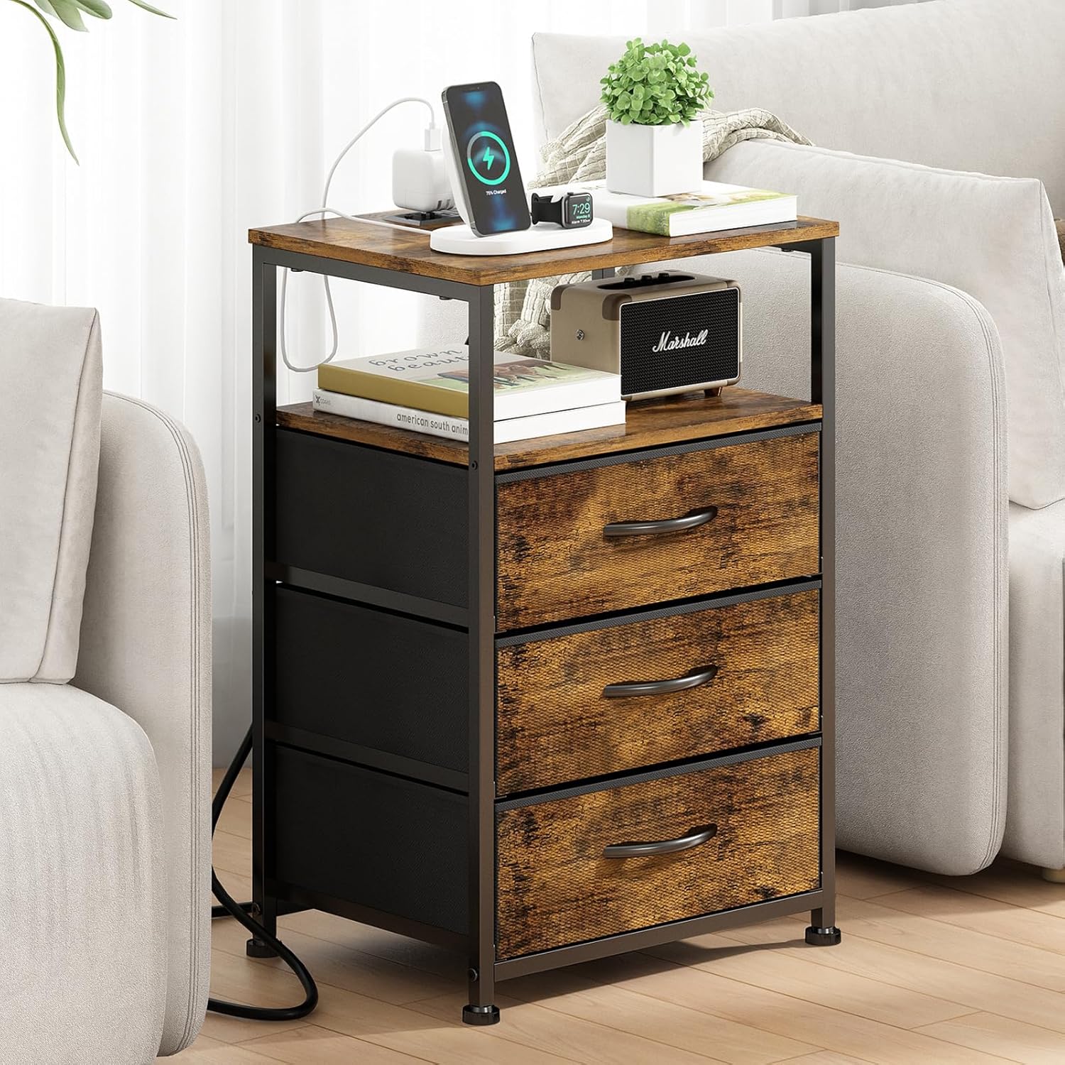 GILLAS Mesa de Noche con Estacion de Carga y 2 Puertos USB