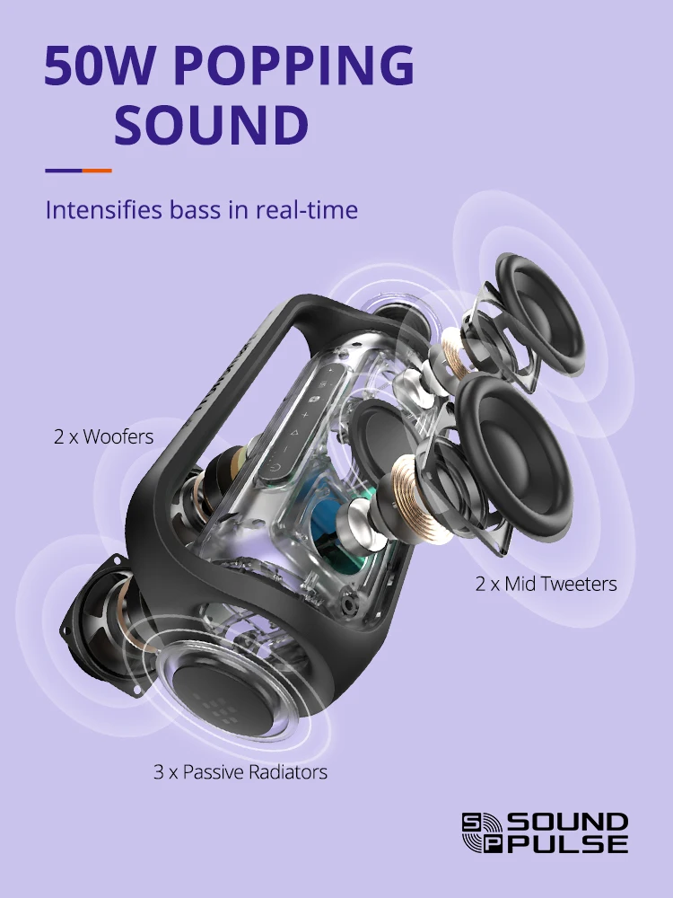 Mini altavoz Tronsmart Bang 50W altavoz portátil para fiesta con Bluetooth 5,3, sonido estéreo, conexión NFC, banco de energía incorporado
